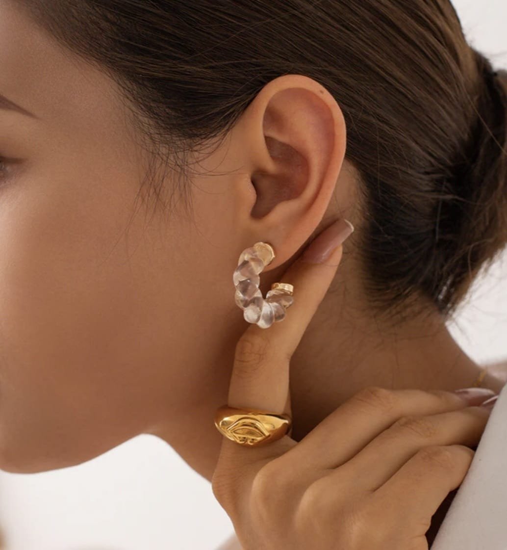 Pendientes Caracol transparente de acero inoxidable con caracol acrílico.
