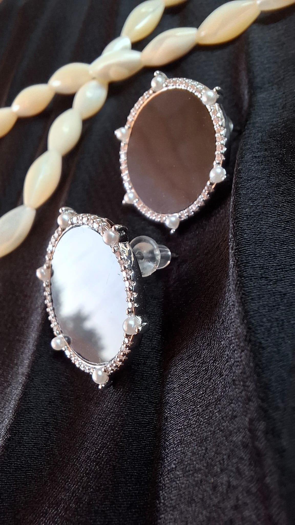 Sé el primero en valorar “Pendientes de color plata Botón negro con 6 perlas”