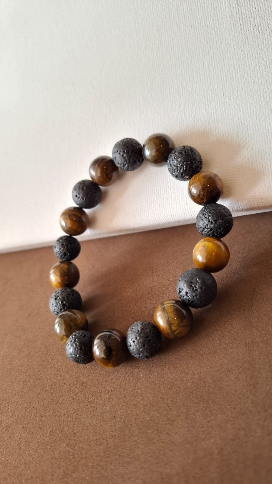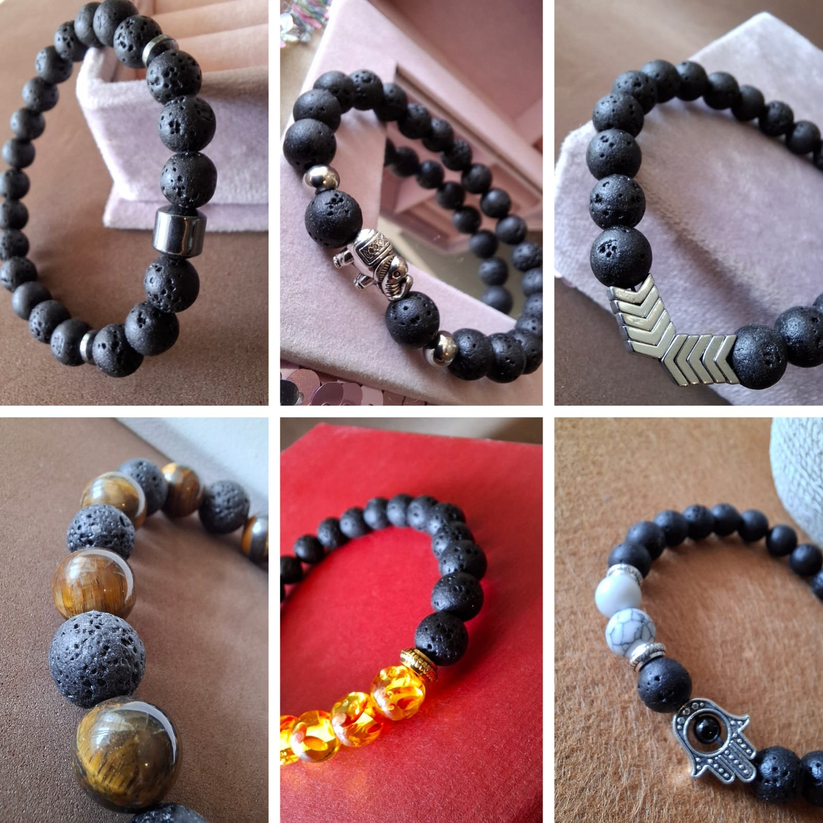 Pulseras «Volcánicas» con combinación de piedras naturales.